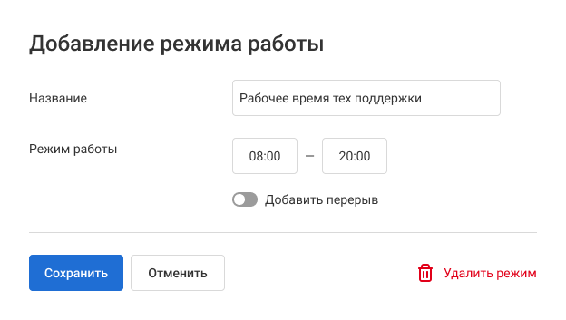 Чтобы создать свой режим работы, нажмите на кнопку «Добавить режим».