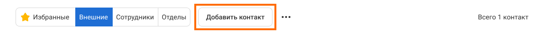 В списке контактов нажмите на кнопку «Добавить контакт».