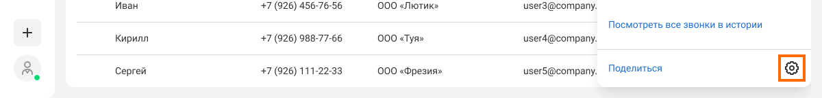 В карточке контакта на вкладке «О контакте» нажмите на шестеренку.