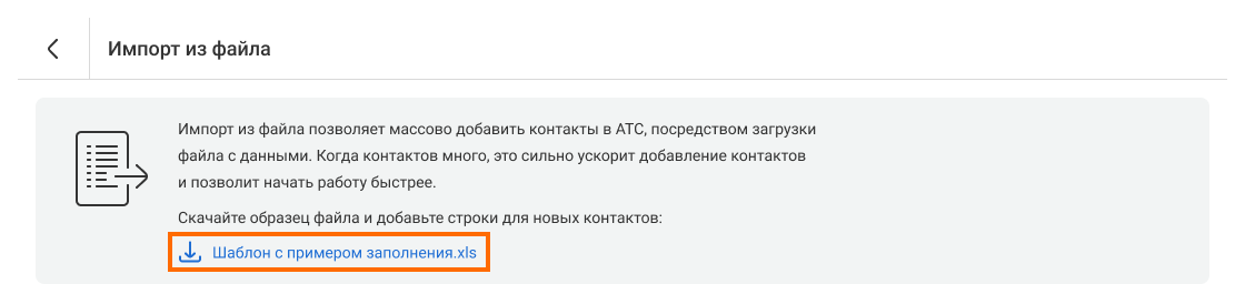 2. Скачайте шаблон файла Excel с примером заполнения списка контактов.