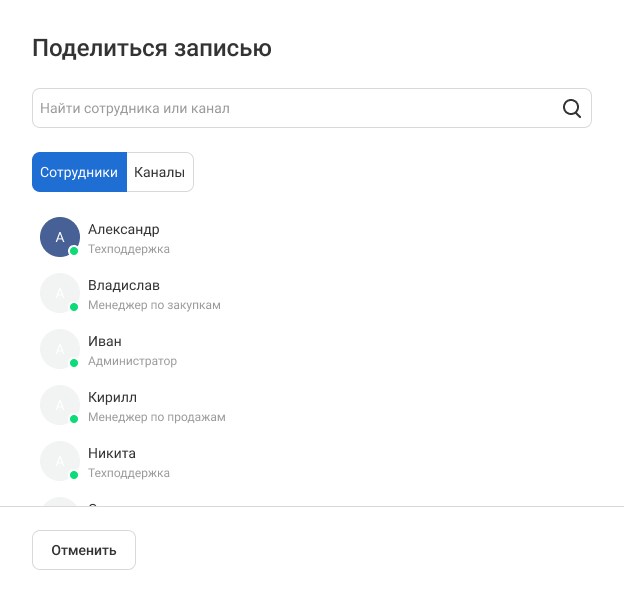 Появится окно с уведомлением об отправке записи — из него вы можете перейти в чат.