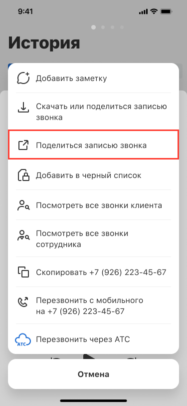 Запись любого звонка можно скачать или поделиться ей с коллегами в формате mp3.