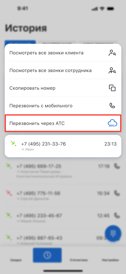 Клиенту можно позвонить из записи о совершенном звонке в «Истории», из карточки звонка или push-уведомления о пропущенном. Расскажем подробнее о каждом из способов.