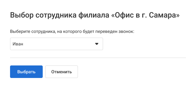 - Если это Виртуальная АТС, то выберите сотрудника в раскрывающемся списке.