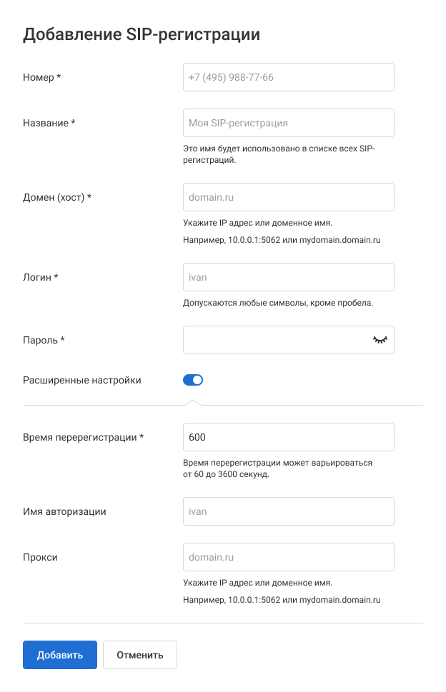 Как подключить внешний SIP-номер с регистрацией?